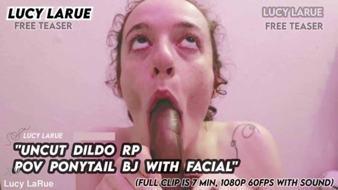 Lucy LaRue - Curly-haired amateur girlfriend gives uncut dildo BJ with ponytail POV